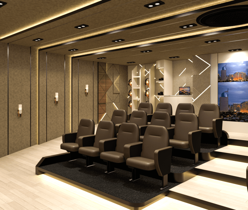 - Sistem tata suara terintegrasi dengan speaker ceiling untuk suara merata ke seluruh ruangan.