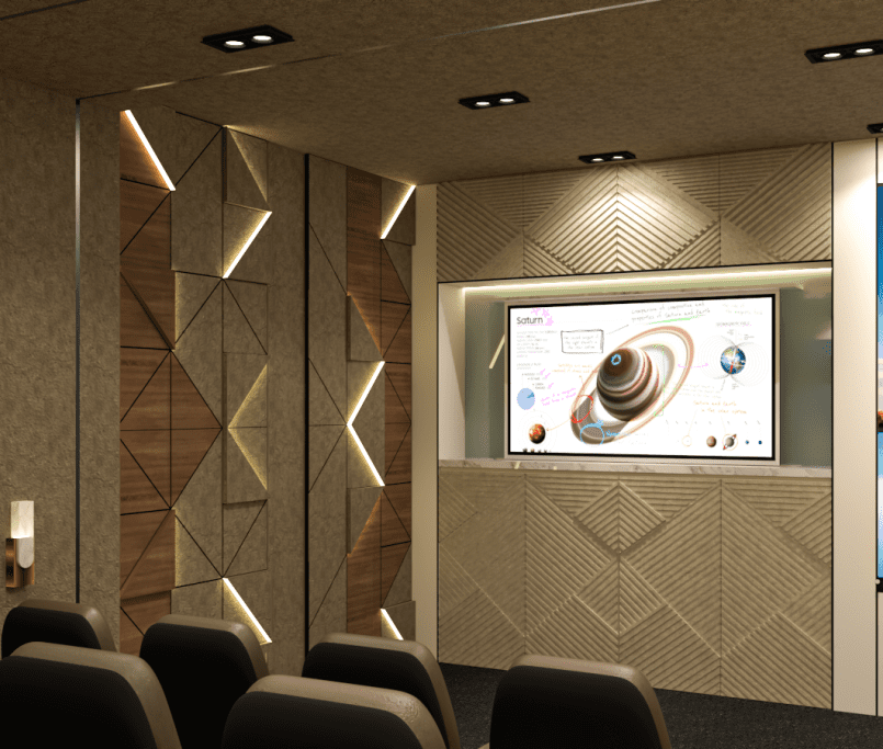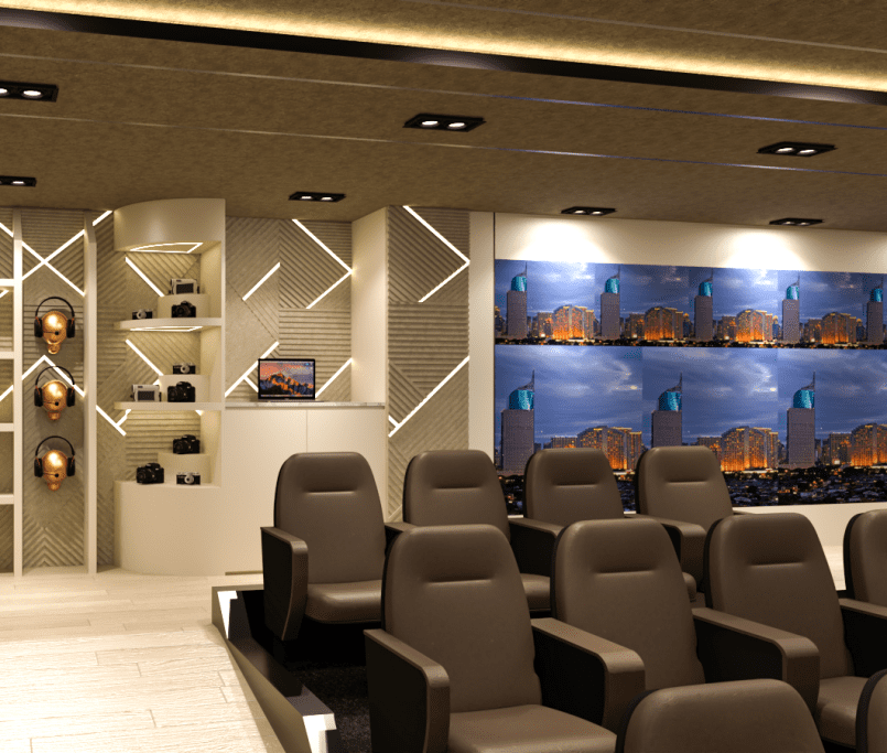 - Ruangan presentasi berhasil dirancang dengan estetika modern sekaligus fungsional.